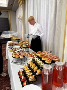Меню рассчитано на 10-15 человек, общее количество закусок 90, это около 6 закусок на человека. Предложение можно корректировать, можем менять , убирать закуски. Также корректировки возможны по услугам. Всегда открыты к обсуждению. Также вместе с официантом посуда для выкладки закусок едет бесплатно.